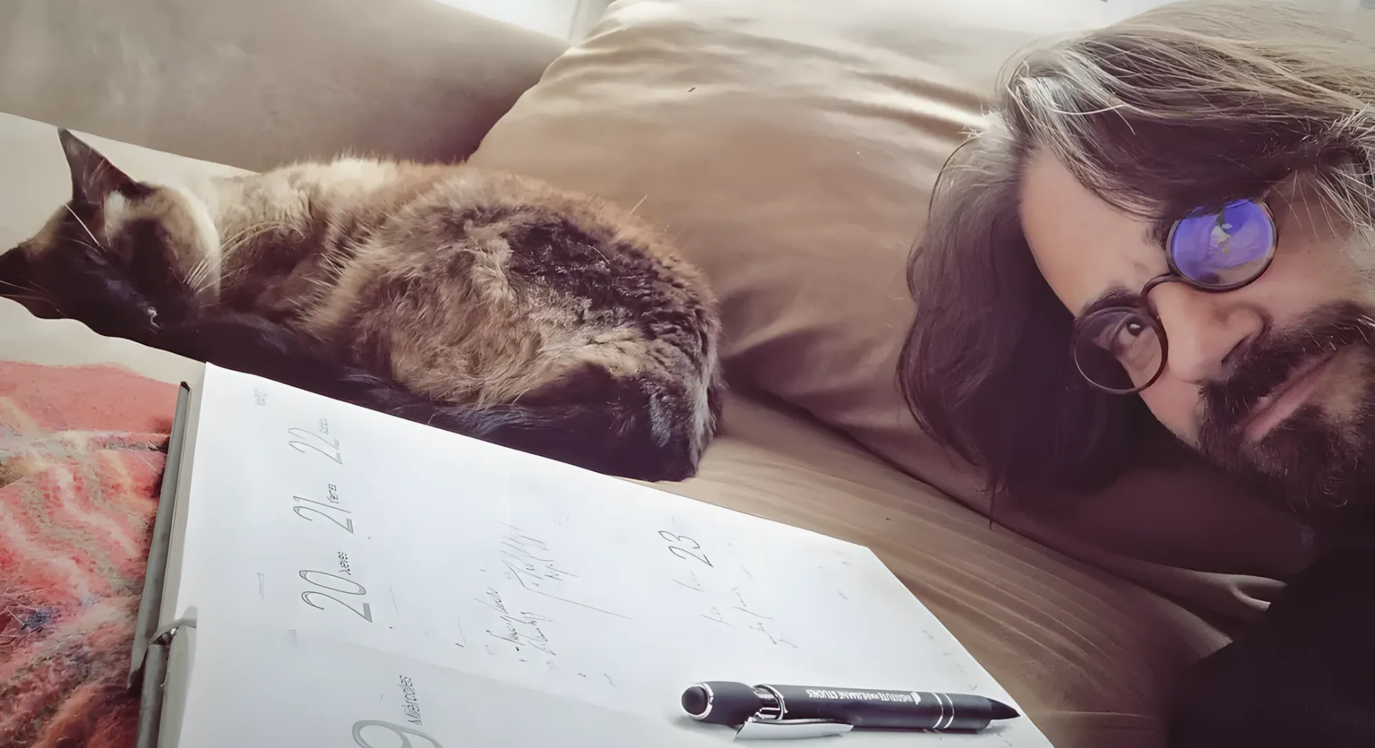 professor, poeta, sofá-gato